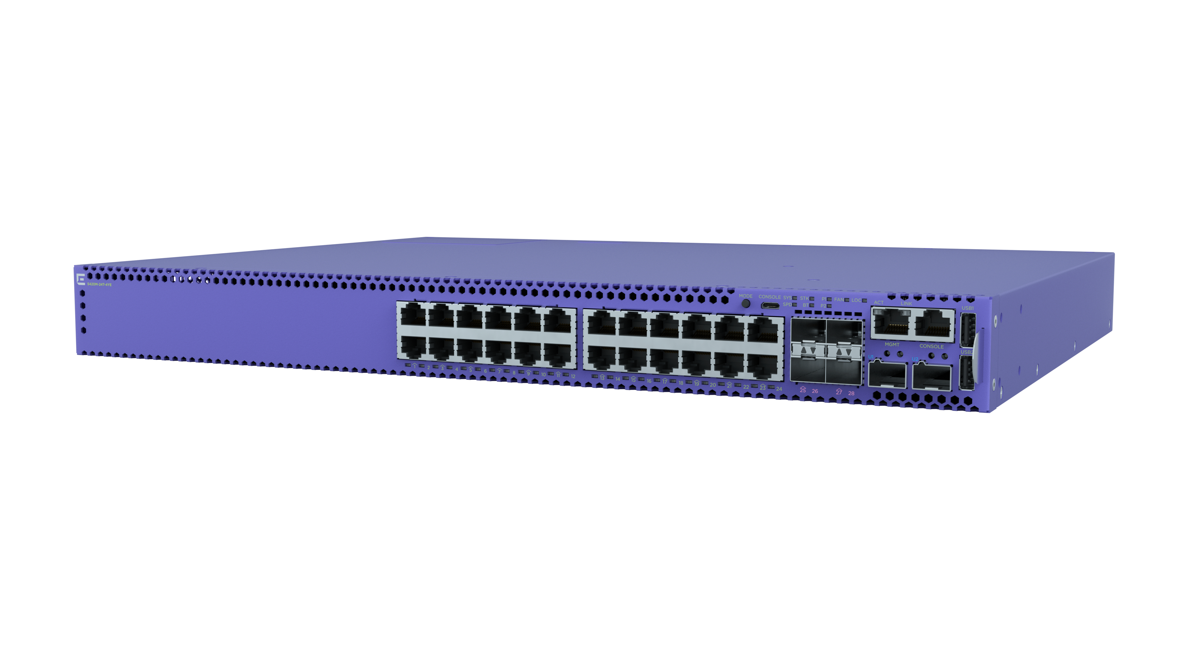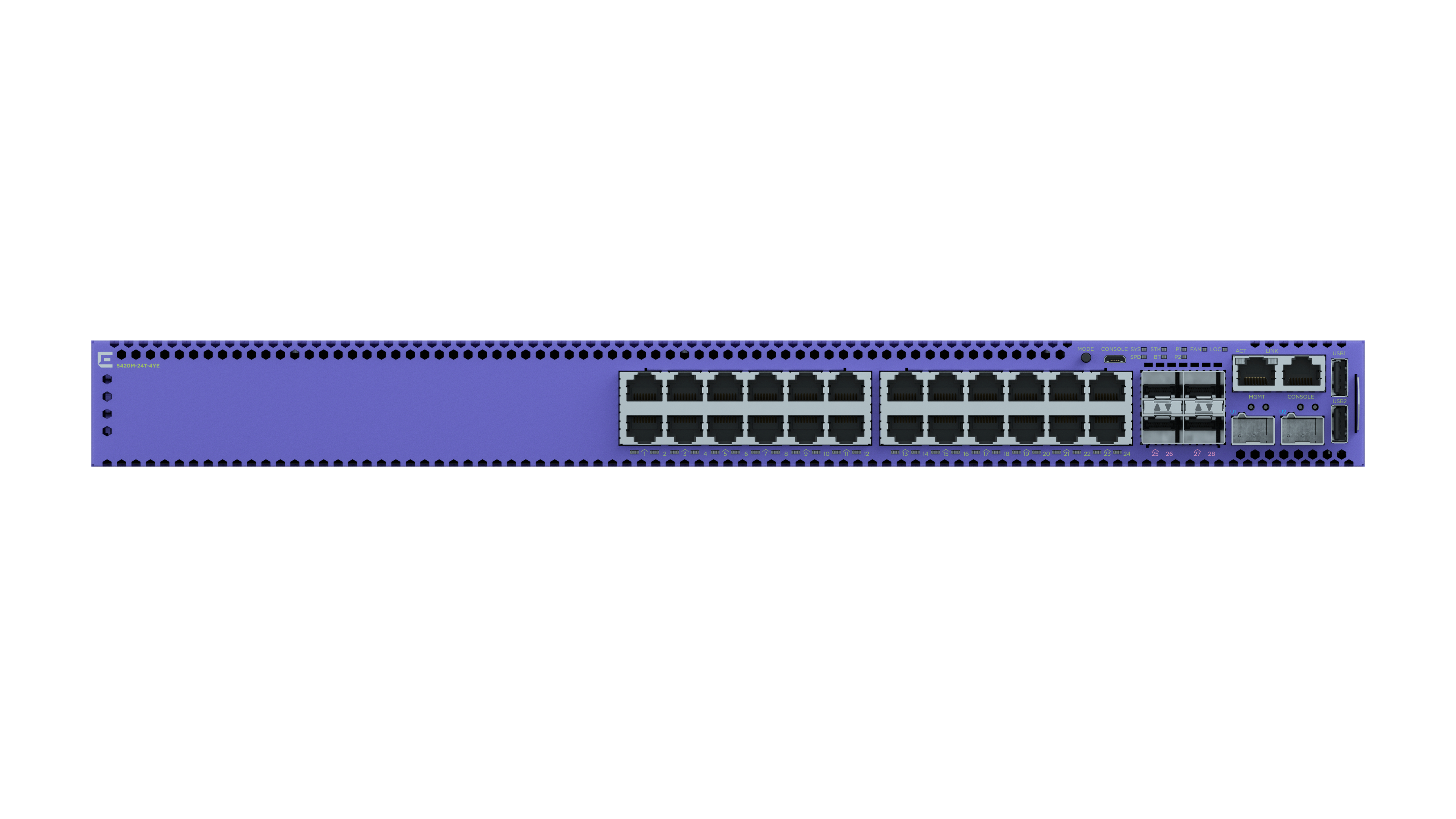 The Extreme Networks 5420M-24T-4YE is a modular Gigabit access switch designed for campus, municipal, and enterprise networks. It provides 24 × 10/100/1000Base-T ports, 4 × 1/10/25Gb SFP28 uplink ports, and two SFP-DD high-speed stacking ports, allowing up to eight systems to stack using qualified DAC/optical modules.