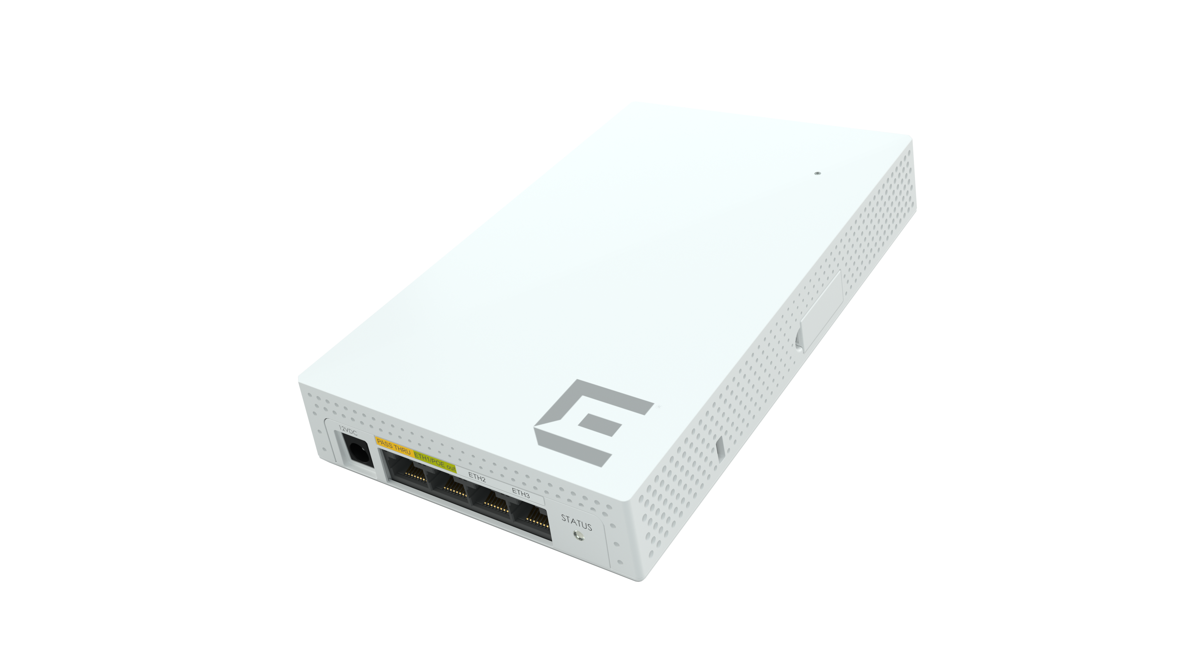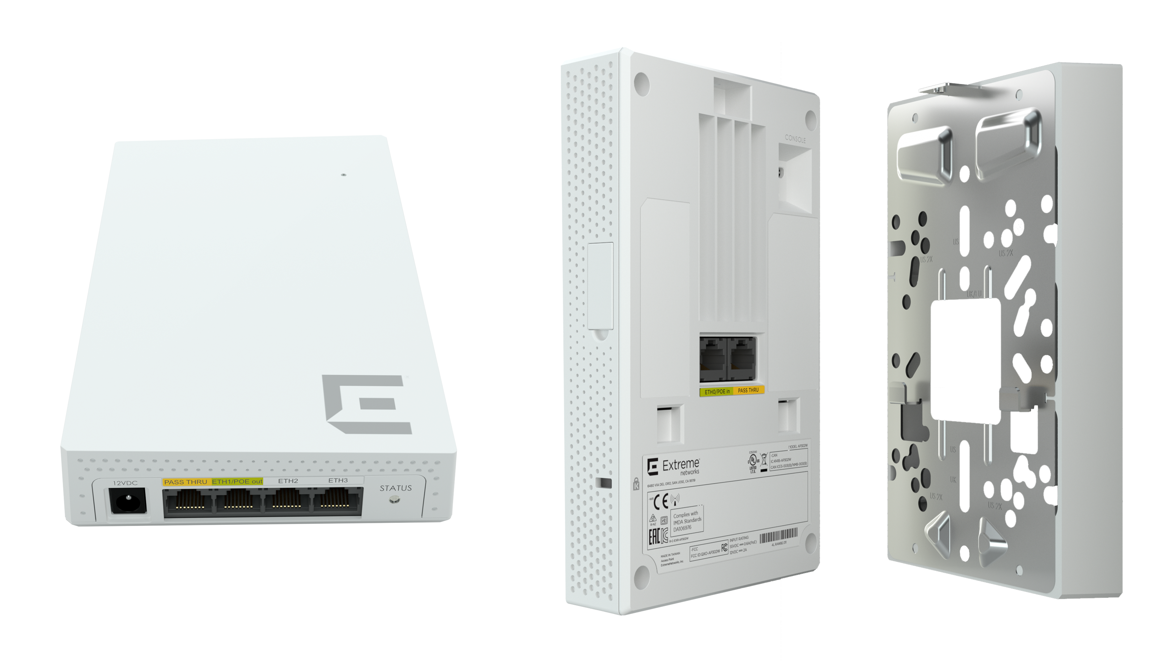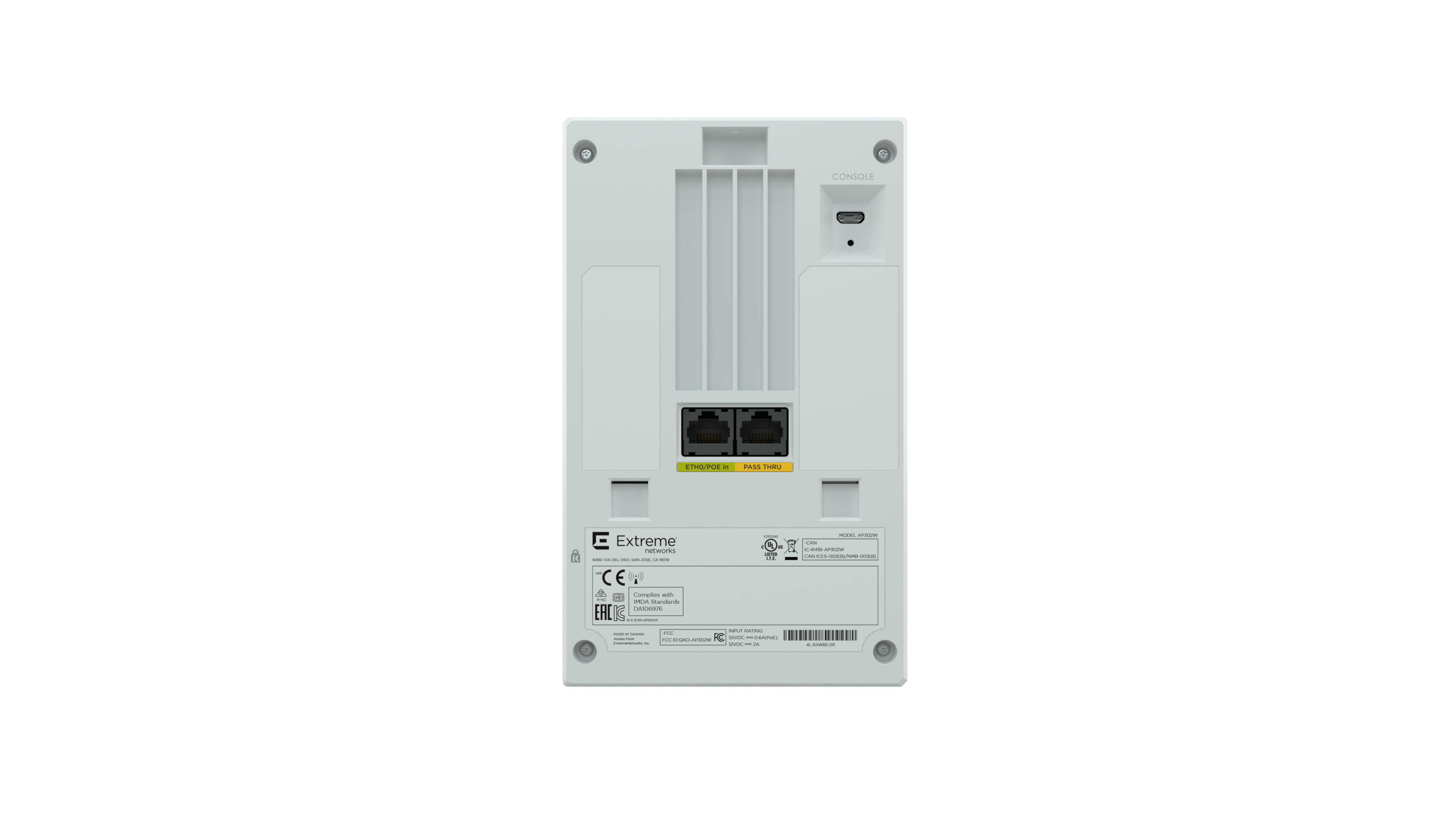 The Extreme Networks AP302W-WR is a versatile Wi-Fi 6 (802.11ax) wall-plate access point built for secure in-room connectivity across hospitality, campus housing, classrooms, and enterprise deployments. Delivering up to 4 Gbps aggregate throughput, the AP302W integrates switching, PoE, and wireless access into a single compact device.