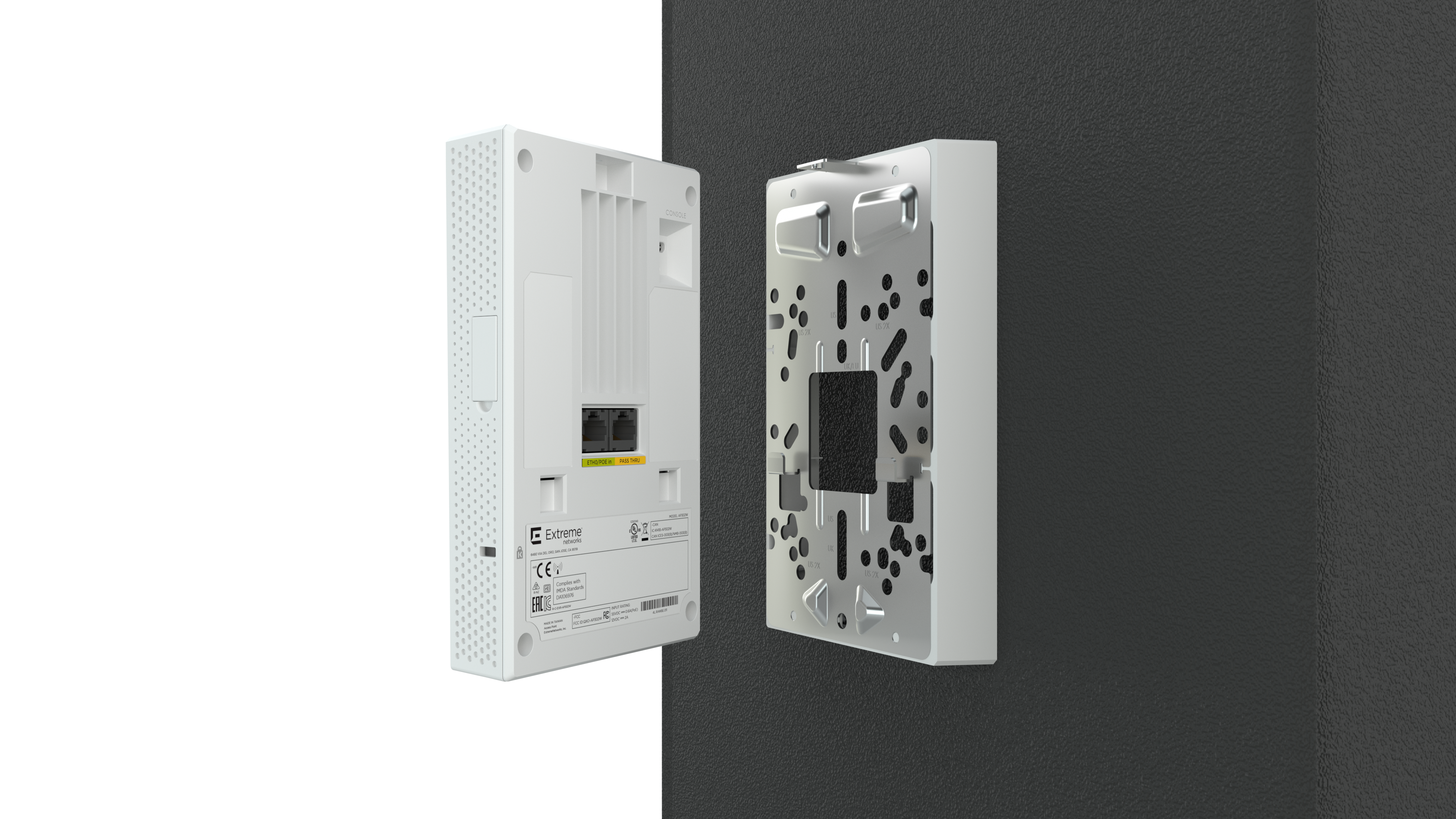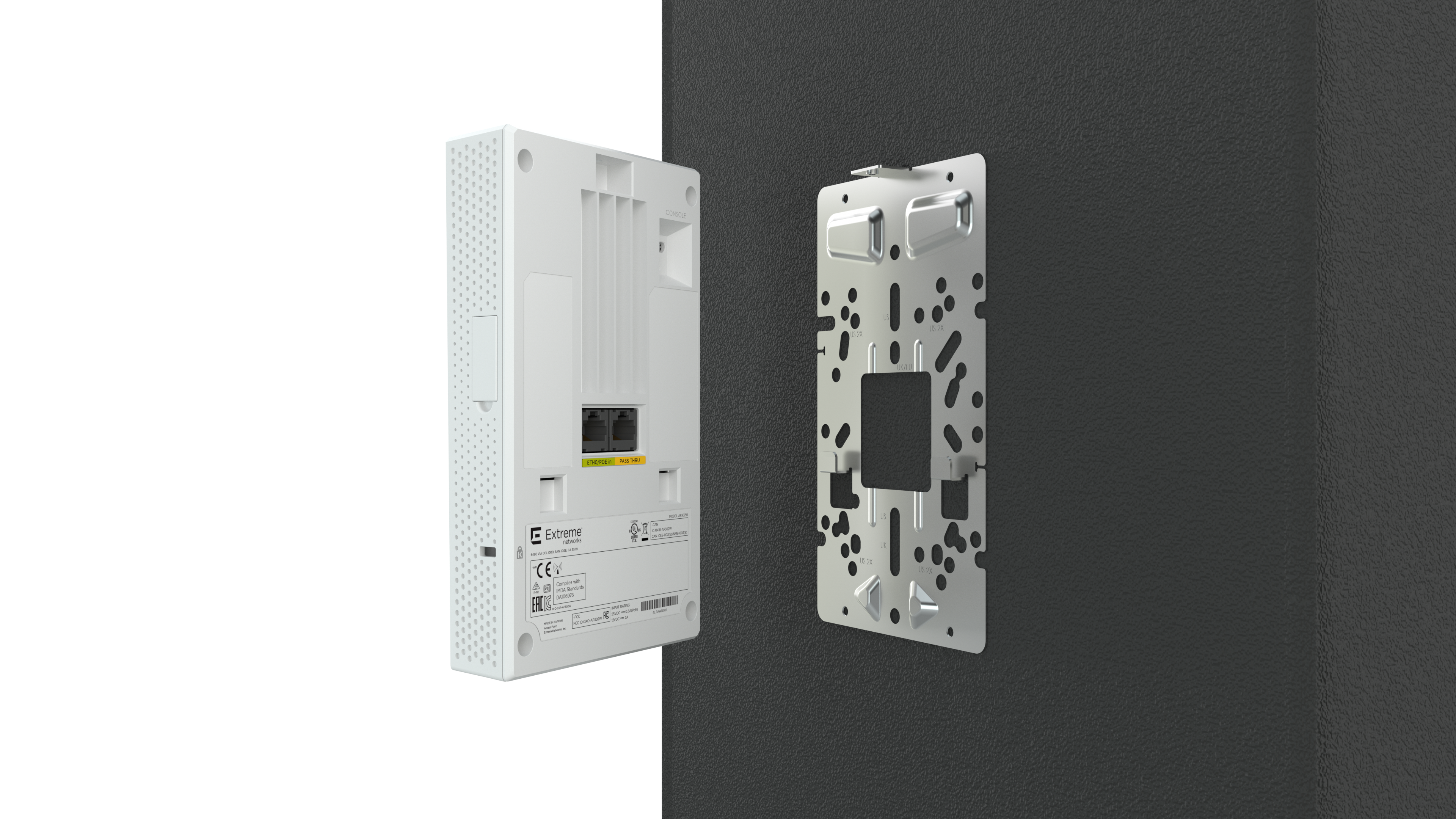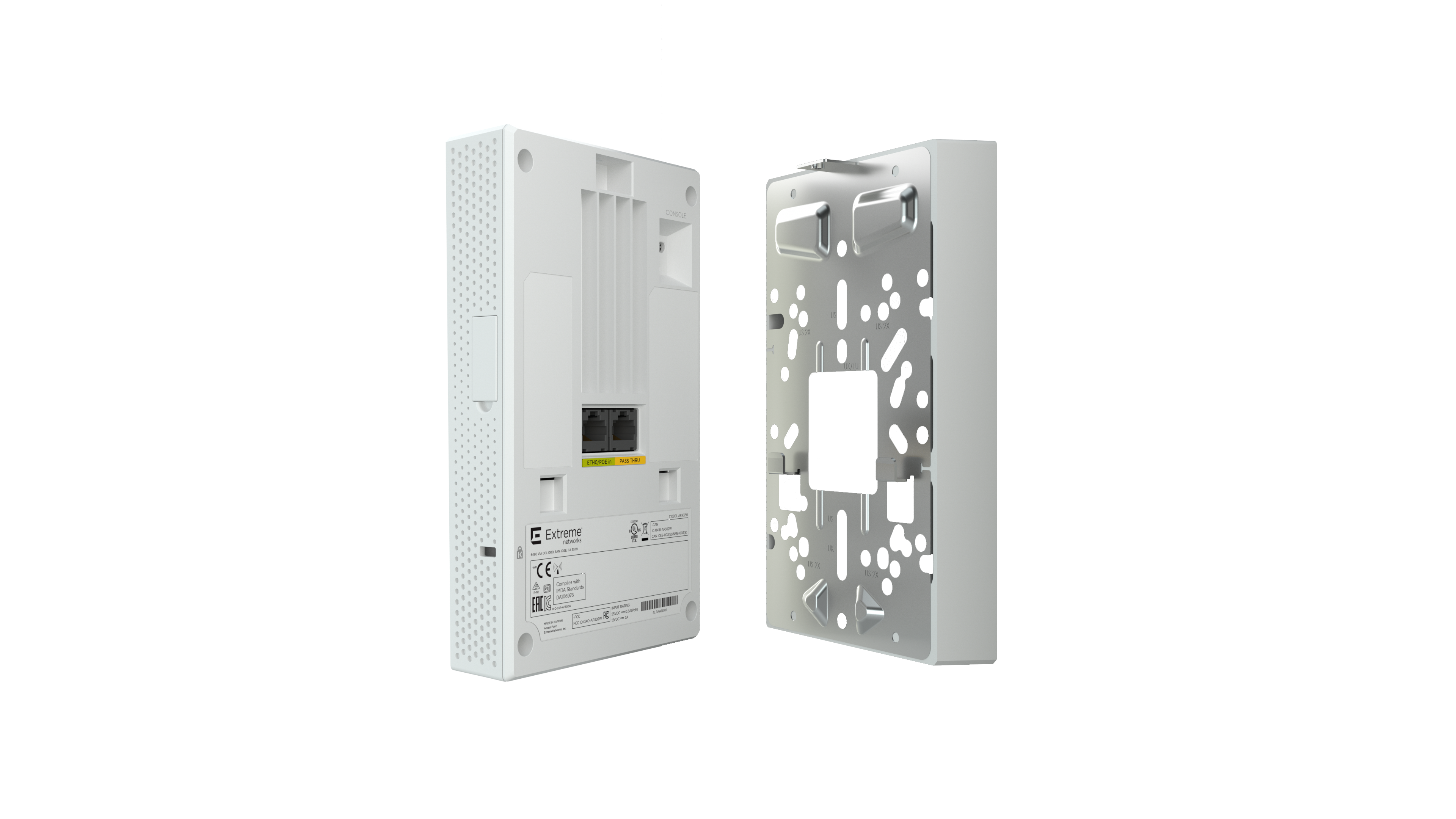 The Extreme Networks AP302W-WR is a versatile Wi-Fi 6 (802.11ax) wall-plate access point built for secure in-room connectivity across hospitality, campus housing, classrooms, and enterprise deployments. Delivering up to 4 Gbps aggregate throughput, the AP302W integrates switching, PoE, and wireless access into a single compact device.